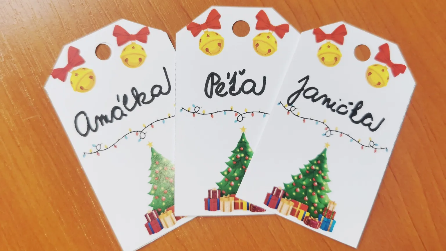 PDF soubor k vytištění a dopsání jmen na jmenovky na vánoční dárky.