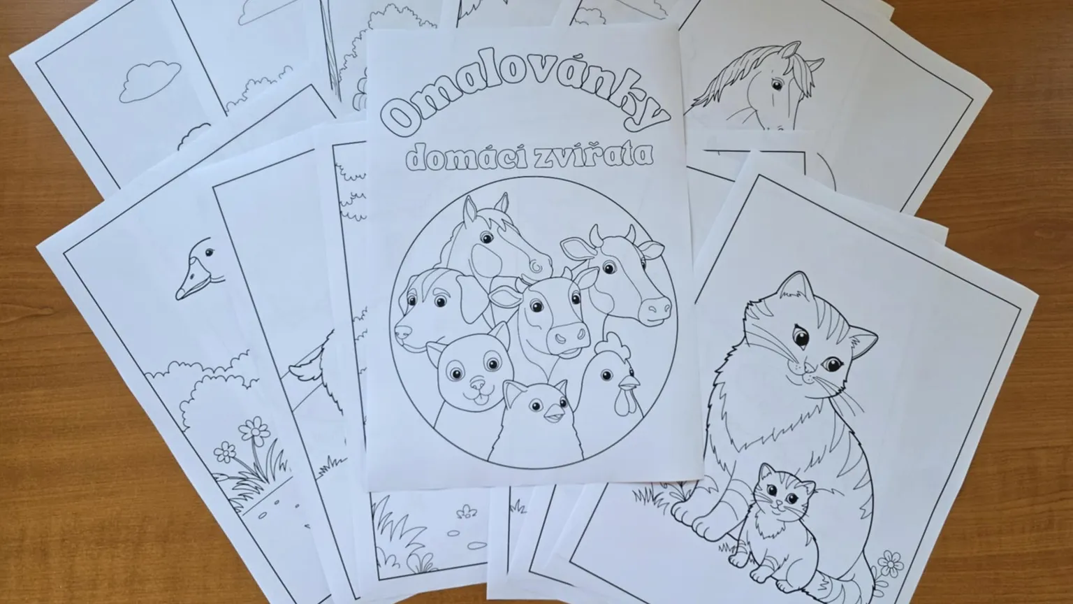 Třináctistránkový PDF soubor s omalovánkami domácích zvířat