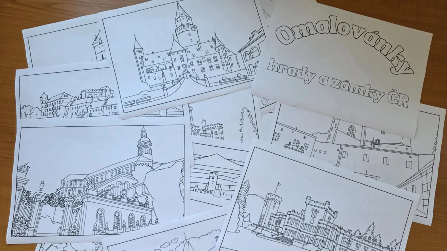 Devatenácdtistránkový PDF soubor s omalovánkami českých hradů a zámků