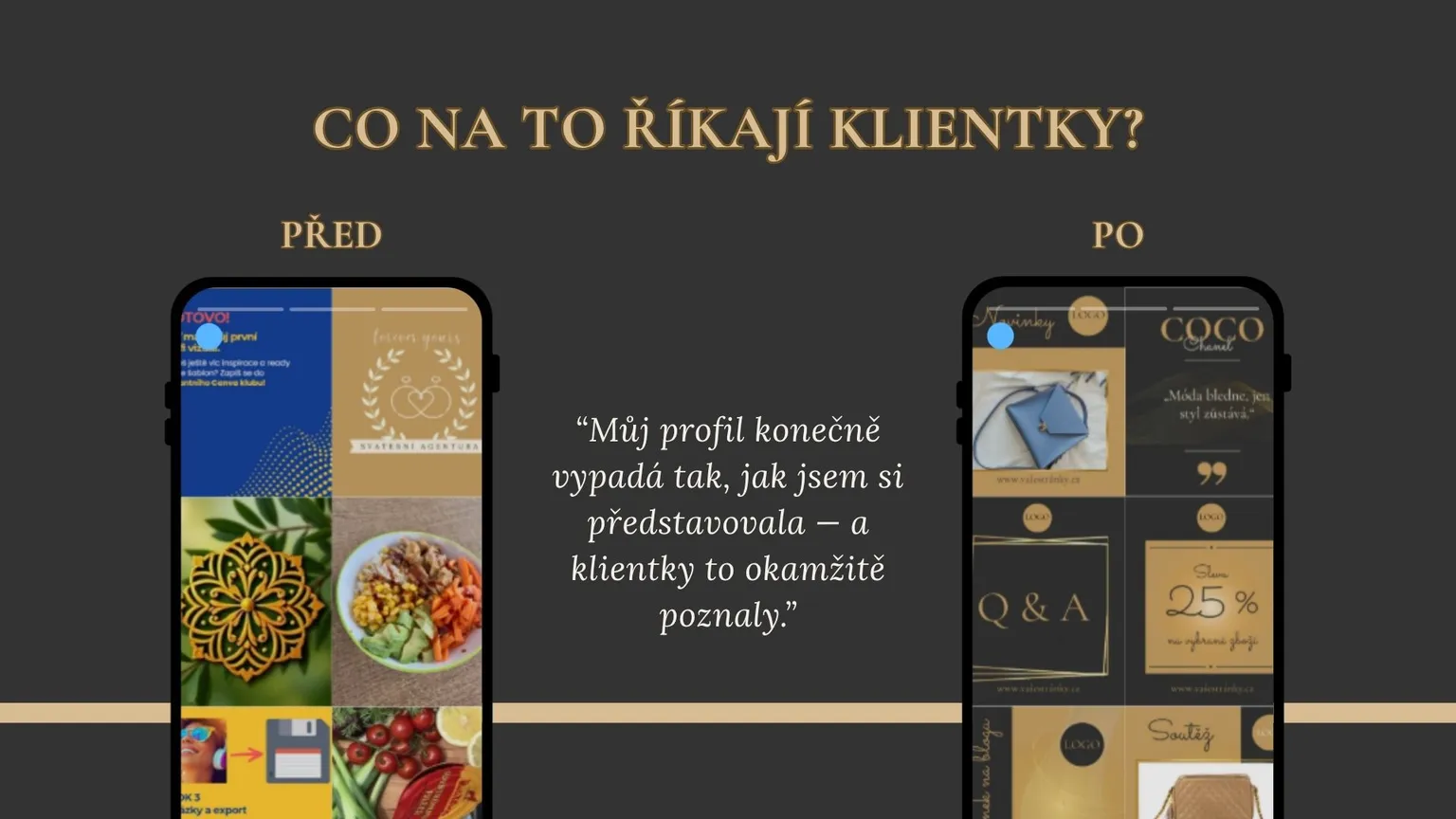 Jednoduše otevřeš šablony → vložíš svůj text/fotky → a tvůj profil začne působit jako značka, ne jako chaos.