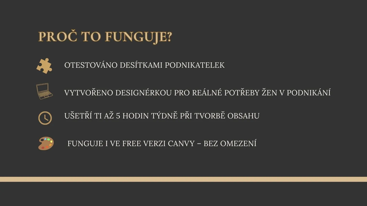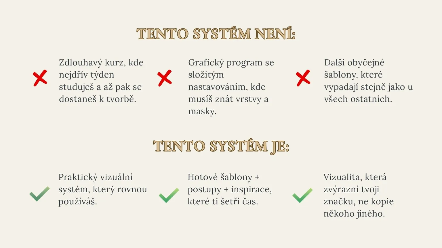 Každá část je promyšlená tak, aby ti ušetřila čas, přinesla klid a dala tvojí značce jasný směr.